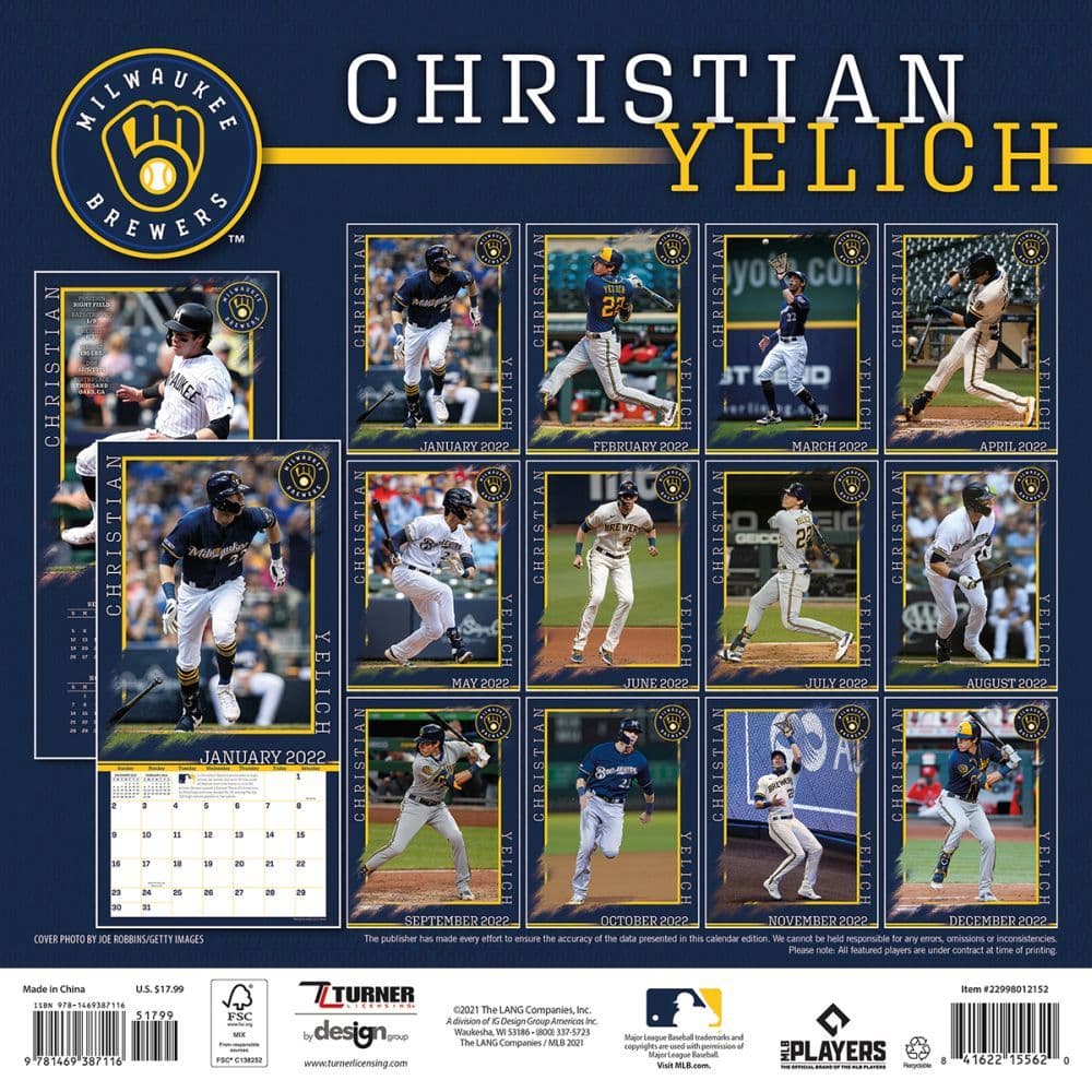 Mlb Christian Yelich Brewers 2022 Wall Calendar Calendars Com